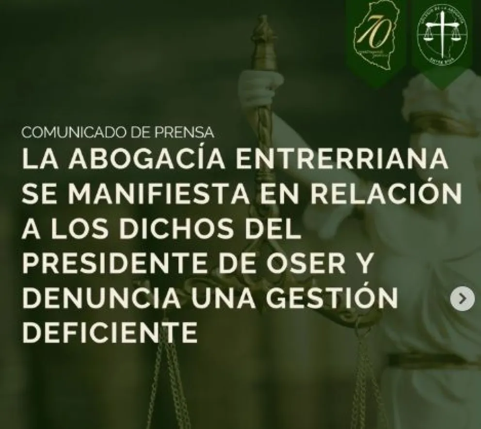 El Colegio de la Abogacía de Entre Ríos repudió acusaciones del presidente de OSER sobre supuesta “industria del amparo”
