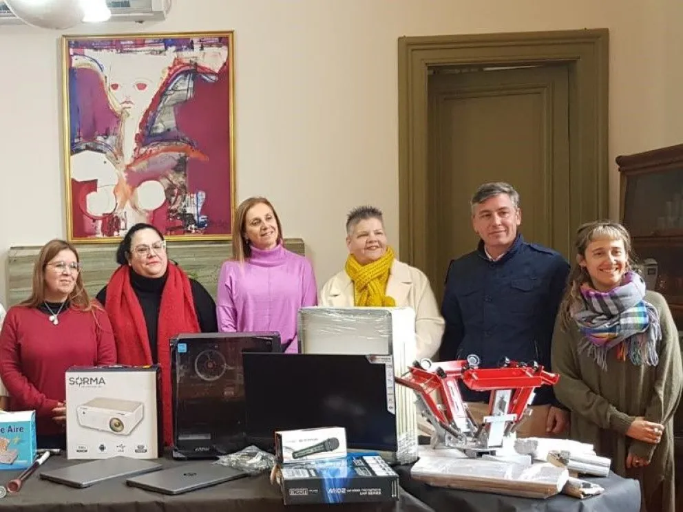 En el acto se presentó el equipamiento informático adquirido (proyector, pantalla, computadora de escritorio, notebook) así como los elementos para el cuidado de adultos mayores como bastones, andador, entre otros.