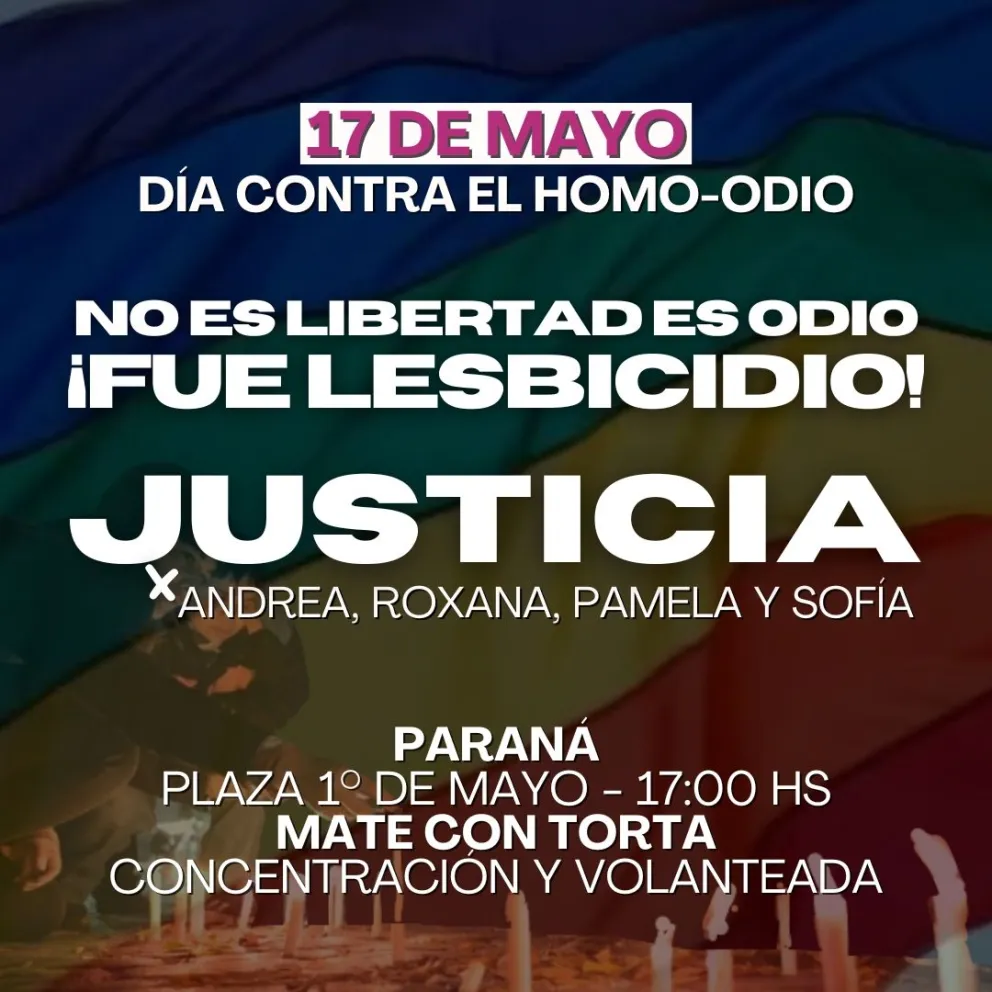 Tras ese suceso, en el marco del Día Internacional de lucha contra las violencias hacia las personas LGBTIQ+, en Paraná se realizará una concentración y volanteada este viernes a las a las 17 en la Plaza 1º de Mayo. La invitación es abierta a toda la sociedad que desee acompañar el reclamo, supo esta Agencia.