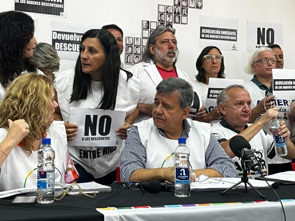 Este lunes por la mañana la Asociación Gremial del Magisterio de Entre Ríos (Agmer) realizó una conferencia de prensa en la seccional de la capital entrerriana tras un plenario para visibilizar el reclamo por los descuentos injustificados que sufrió el sector por errores en las liquidaciones y también por los días de paro.