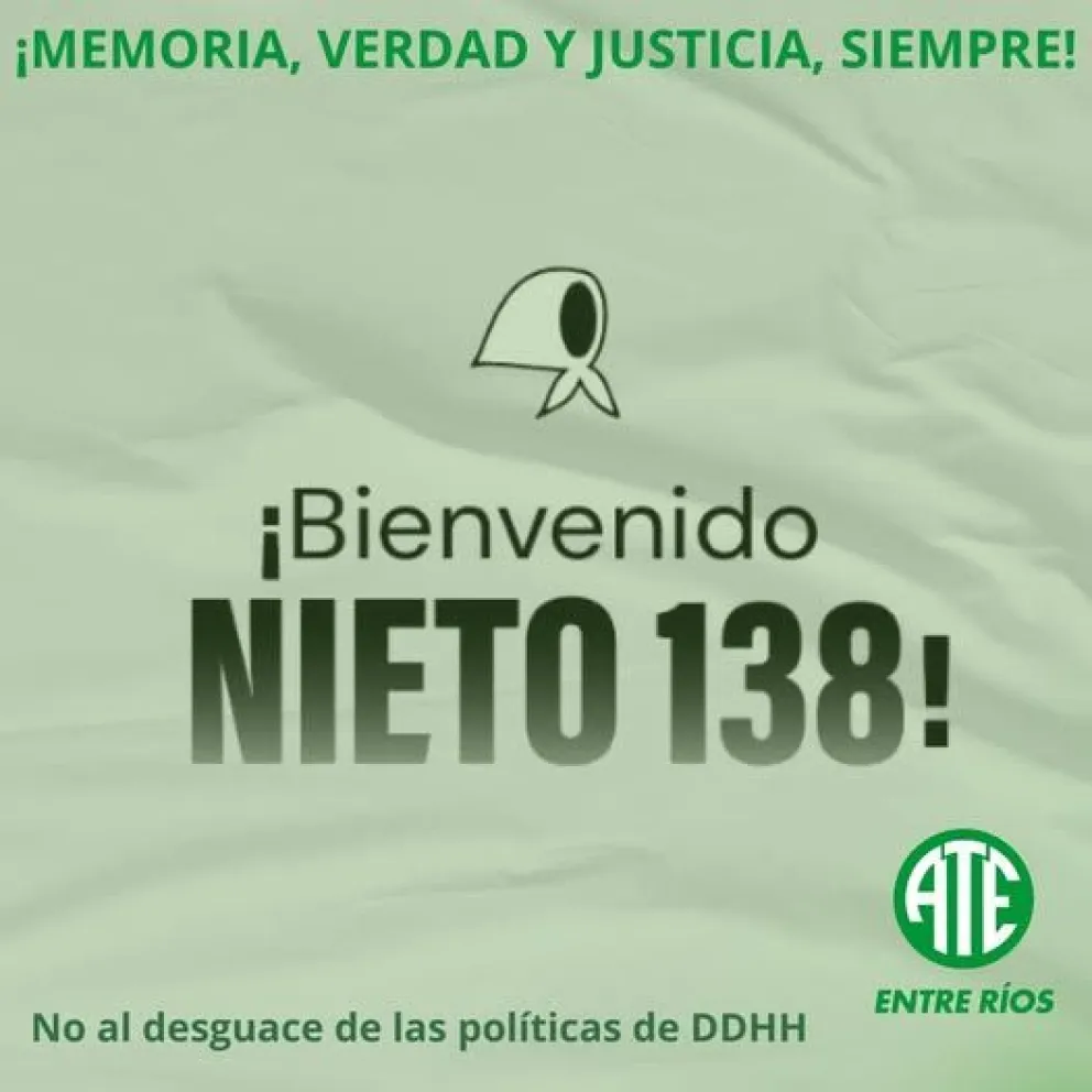 ATE Entre Ríos celebró la aparición del nieto 138 de las Abuelas de Plaza de Mayo