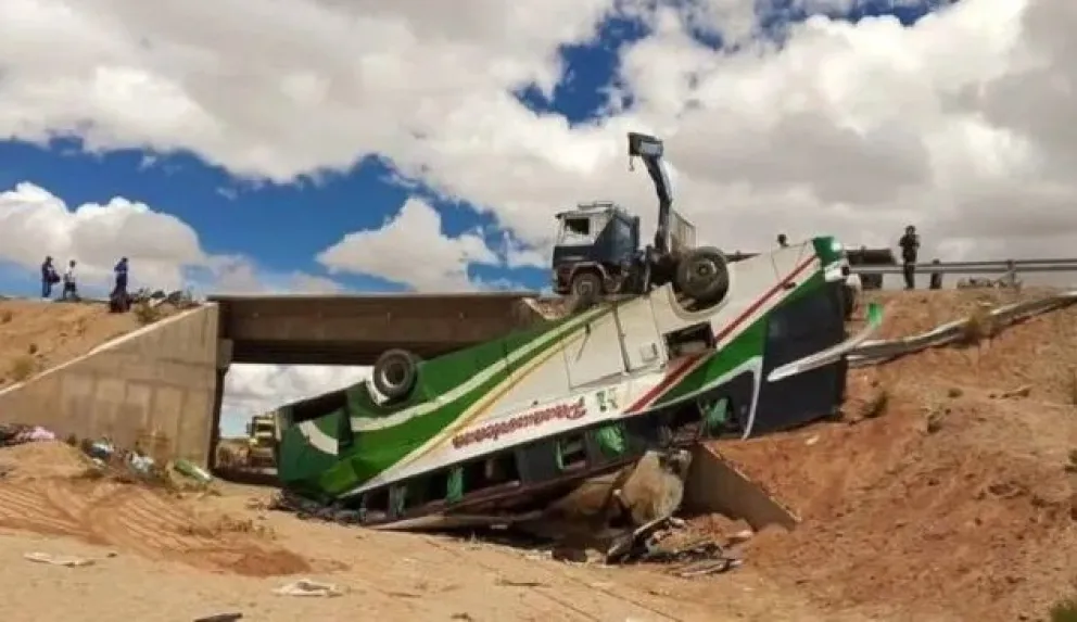 El vehículo, que viajaba entre La Paz y Villazón (frontera con la Argentina), se salió de la ruta y volcó debido al exceso de velocidad, según la Policía.