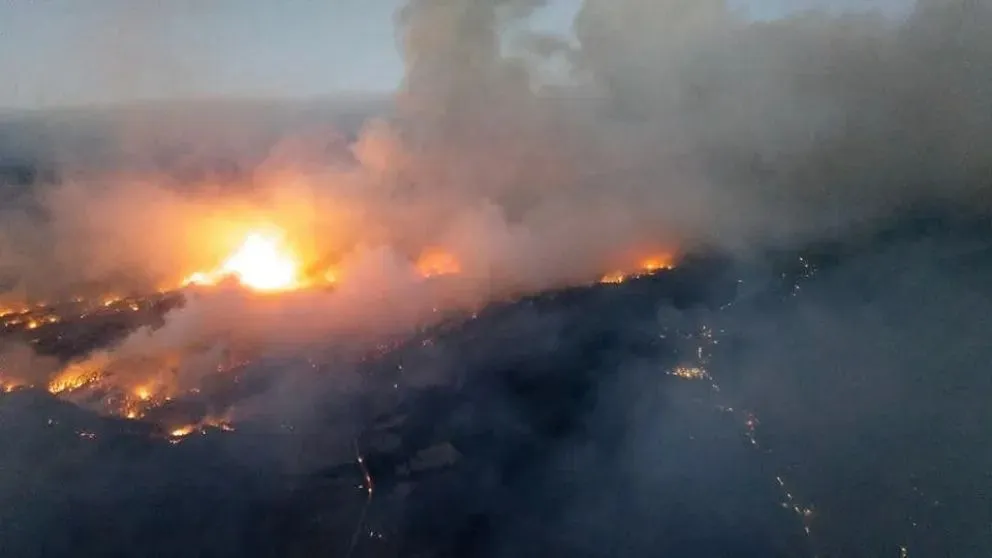 El incendio comenzó en Andrapale, pasó por Mallín del Medio y llegó hasta El Huadal, afectando más de 1.600 hectáreas. Hay medios aéreos trabajando desde temprano.
