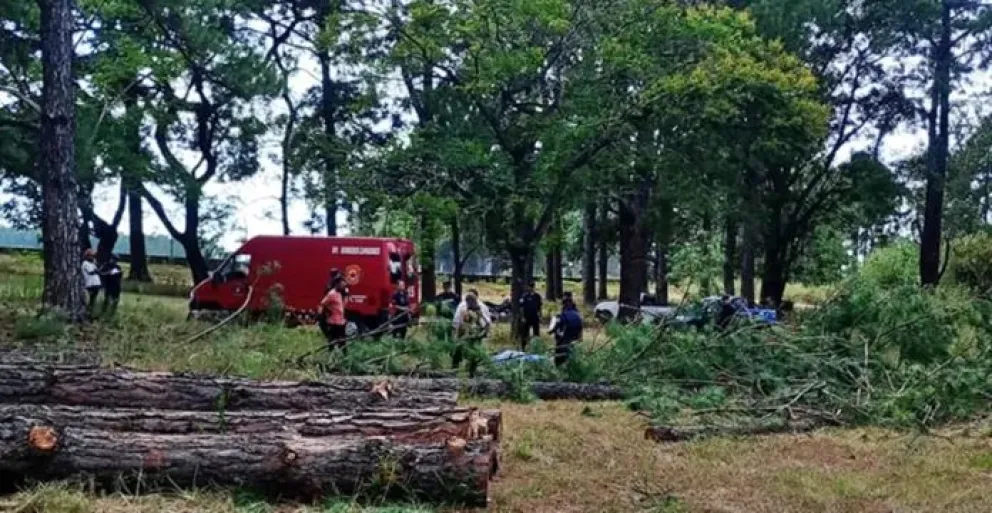 A una vez en el lugar, constataron que un hombre de 57 años que se encontraba realizando tareas de corte y poda tuvo un accidente cuando uno de los árboles se desprendió y cayó sobre su cuerpo.
