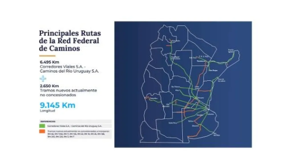 El Gobierno puso a cargo de este proceso a la Dirección Nacional de Vialidad de la Secretaría de Transporte de la Nación, en donde lanzaron el programa Red Federal de Concesiones para licitar 9.145 kilómetros distribuidos en trece tramos que representan el 20 por ciento de la red vial nacional pero concentran el 80 por ciento del tránsito.