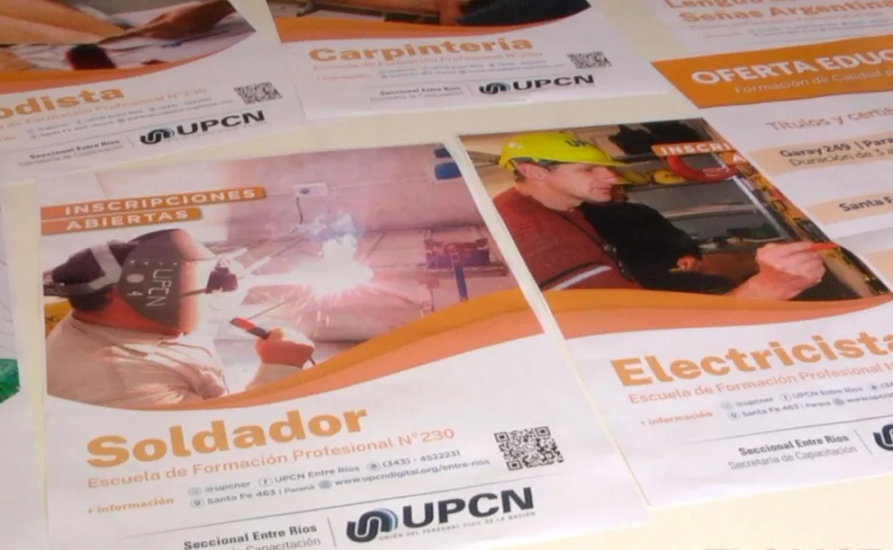 El gremio UPCN informó que se encuentran abiertas las inscripciones en sus tres instituciones educativas de Paraná y Nogoyá. Las escuelas, que están certificadas bajo normas de calidad IRAM, ofrecen una amplia variedad de cursos en 11 oficios. Entre ellos se encuentran el cuidado gerontológico, soldadura, gasista domiciliario, electricista domiciliario, manejo de paquete office e inteligencia artificial, entre otros.