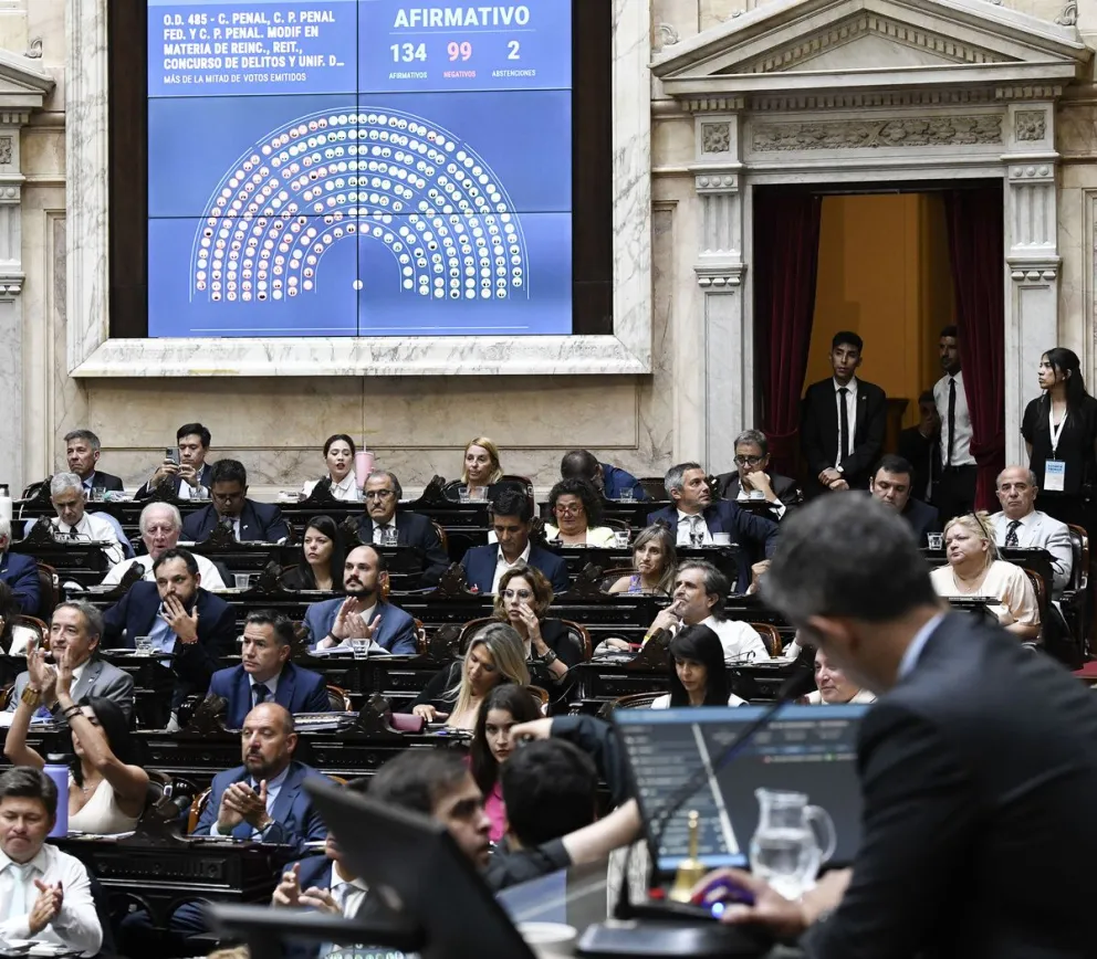 La norma se aprobó con 67 votos a favor. En la votación en particular, Unión por la Patria (UP) se diferenció en la mayoría de los artículos. La norma impulsada por el Ministerio de Seguridad tiene como objetivo terminar con la llamada “puerta giratoria” para los delincuentes.