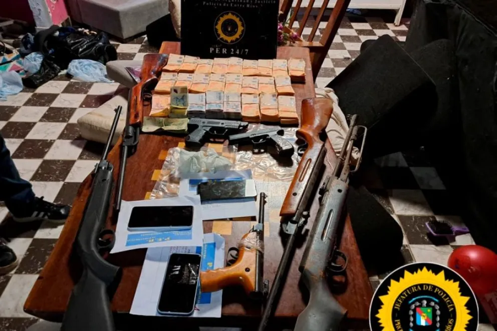 Se trató de $5.000.000, dos envoltorios con 200 gramos de clorhidrato de cocaína, armas y demás elementos interés para la causa que se investiga por la presunta venta de drogas al menudeo en Concordia.