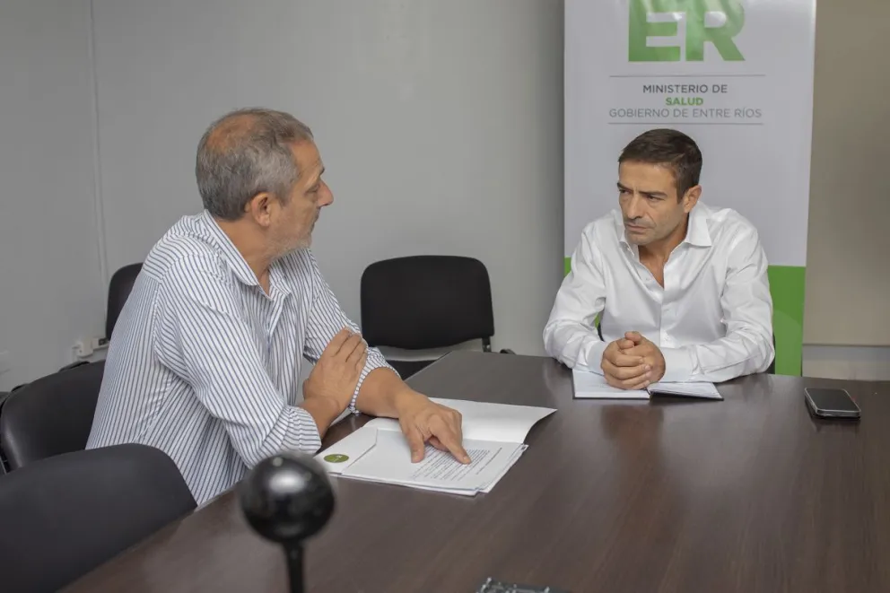 El ministro de Salud de Entre Ríos, Daniel Blanzaco, recibió al decano de la Facultad de Ciencias de la Vida y la Salud (FCVyS) de Uader, Aníbal Sattler, con quien hizo un repaso de las diferentes líneas de trabajo interinstitucional. En el encuentro, además, se plantearon nuevas iniciativas que interesa impulsar de forma conjunta.