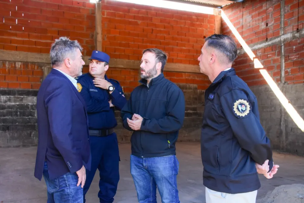 El Ministro de Seguridad y Justicia, Néstor Roncaglia, junto al intendente de Concordia, Francisco Azcue, el jefe de Policía, Claudio González y el jefe departamental José María Rosatelli, visitaron el lugar para anunciar su transformación en un taller de chapa y pintura para patrulleros y un nuevo destacamento policial para el barrio.