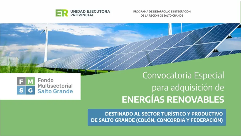 El Fondo Multisectorial de Salto Grande, abrió la convocatoria a proyectos de inversión de los sectores productivos y turísticos de los departamentos de Concordia, Federación y Colón, con el objetivo de fomentar la adopción de energías renovables en la región.