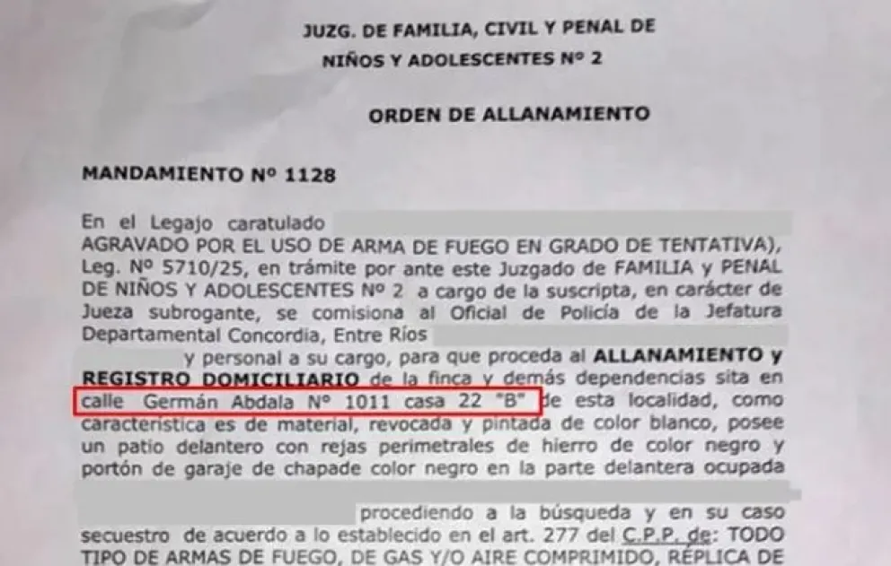 Se trataba de dos allanamientos ordenados el por Juzgado de Familia, Civil y Penal de Niños y Adolescentes 2 de Concordia.
