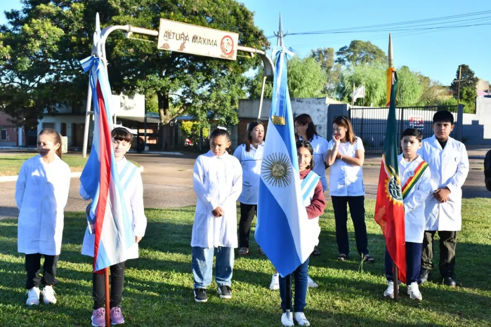La ceremonia oficial tuvo lugar entre las plazas Artigas y Washington, con la presencia del intendente José Luis Walser, la viceintendenta María Dalleves, concejales, funcionarios, autoridades educativas y fuerzas de seguridad. Luego del izamiento de la bandera, el Himno Nacional y la Marcha de Entre Ríos, se compartieron palabras religiosas y una ofrenda floral al pie del busto de Manuel Belgrano.