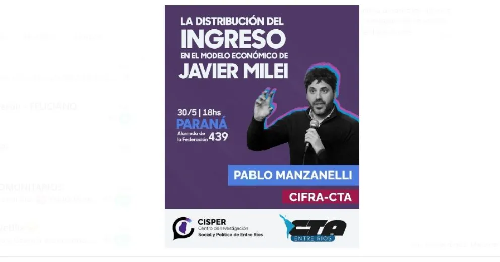 Este viernes se lanzará en Paraná el Centro de Investigación Social y Política de Entre Ríos (Cisper), que funcionará en la órbita de la CTA. La actividad tendrá lugar en el local de la central sindical (Alameda de la Federación 439) a las 18 hs y contará con la participación de Pablo Manzanelli, referente nacional de CIFRA-CTA.