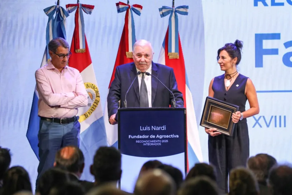 Cabe señalar que, durante la XVIII Reunión Institucional de la Región Centrol, Luis Nardi, creador y presidente honorario de AgroActiva, recibió junto a sus hijos -Rosy, actual directora general; y Luis, director operativo-el premio Integrados, de manos de los gobernadores, en reconocimiento a su aporte al desarrollo productivo del interior. En esa oportunidad, Nardi agradeció y reafirmó su compromiso con el federalismo y el trabajo con productores. (APFDigital)