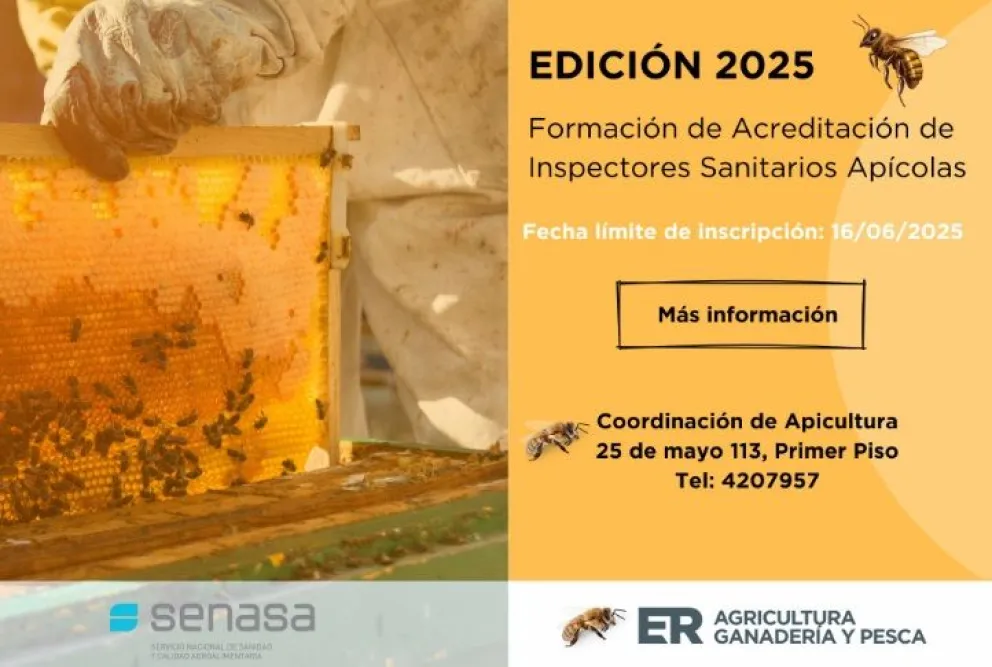 La Secretaría de Agricultura, Ganadería y Pesca, a través de la coordinación de Apicultura informó que está abierta la inscripción para el curso de acreditación de Inspectores Sanitarios Apícolas 2025. La capacitación comprenderá dos instancias y está a cargo de técnicos del Servicio Nacional de Sanidad y Calidad Agroalimentaria.