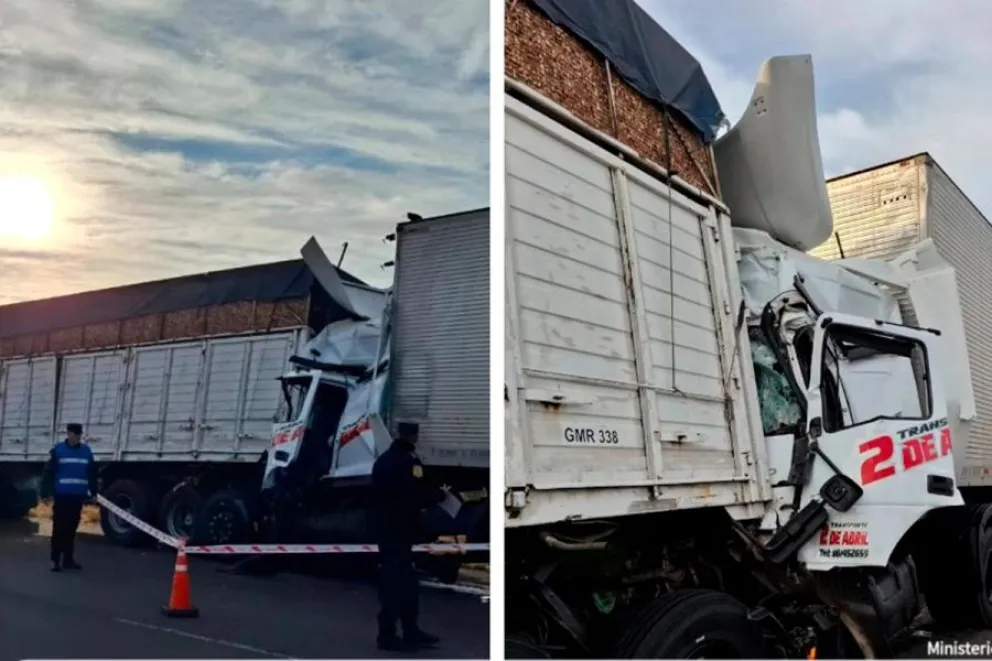 El hecho ocurrió a la altura del kilómetro 208, cuando un camión Iveco, que transportaba virutas de madera, fue embestido en la parte trasera por un camión térmico que trasladaba palets.