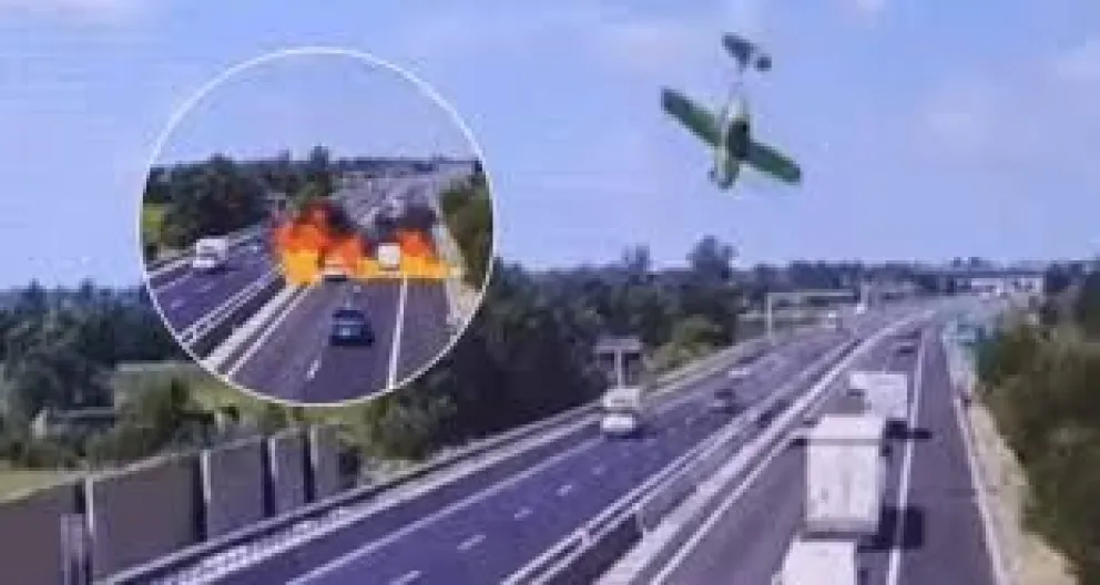 Tragedia en el norte de Italia: un avión ligero se estrelló sobre una autopista y causó dos muertes