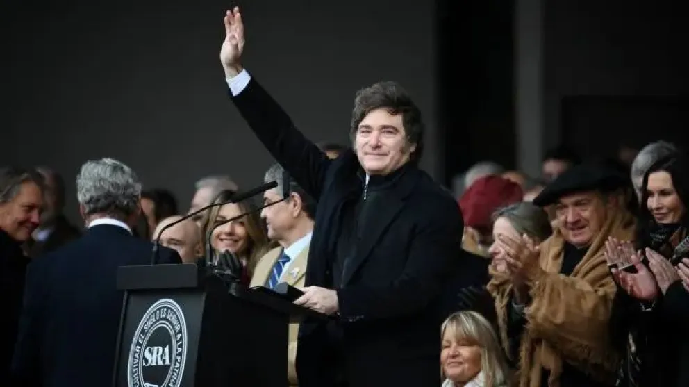 El presidente encabezó este sábado el acto central en la Exposición Rural. El líder libertario fue ovacionado tras anunciar la reducción en los gravámenes al campo.