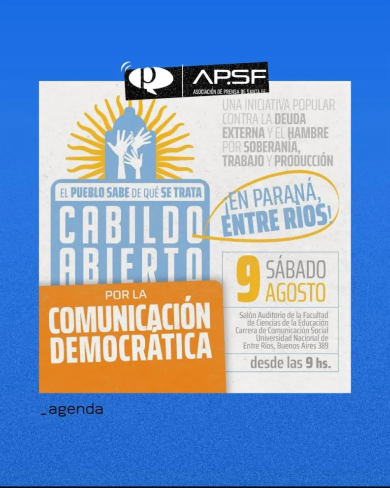 En busca de una comunicación democrática, se realizará en Paraná un "Cabildo Abierto" para debatir sobre el rol del periodismo, la inteligencia artificial y la soberanía comunicacional. El evento, organizado por más de 30 organizaciones sociales y sindicales, tendrá lugar el sábado en la UNER y forma parte de un ciclo de encuentros que recorrerán el país.