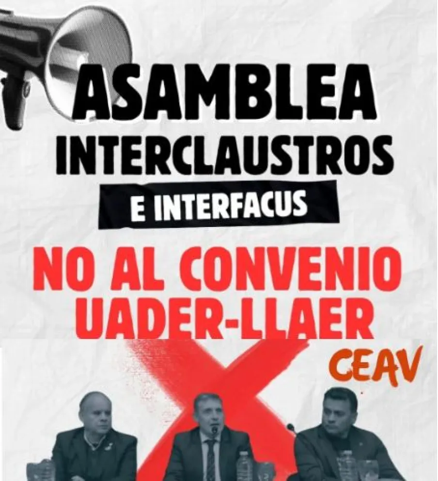 La Asamblea Interclaustros e Interfacultades le solicitó al Consejo Directivo, Decanato y los diferentes Consejos de carreras de Facultad de Humanidades, Artes y Ciencias Sociales “posicionarse en contra” del acuerdo entre la Universidad Autónoma de Entre Ríos y la Libertad Avanza de Entre Ríos.
