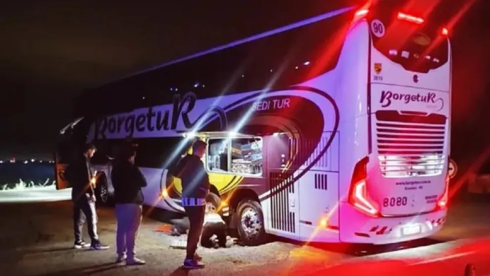 Se trata de un micro Volvo B510R, de la empresa Borgetur de Brasil, con 28 pasajeros a bordo el cual se dirigía con destino a la ciudad de Mendoza, quiso tomar el desvío en “U” de la ruta y “quedó colgado en un bache” entre la cinta asfáltica y la banquina media, informó la Policía.