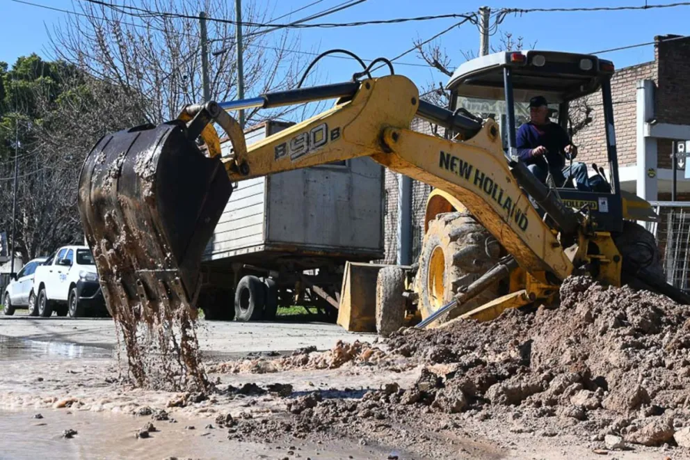 Personal municipal ejecuta este viernes un operativo de emergencia, luego de detectarse la rotura de una cañería distribuidora de 150 milímetros, ocasionada en el marco del avance de la obra de colocación de un nuevo caño de impulsión de agua, que unirá la planta potabilizadora Echeverría con el centro de distribución Ramírez.