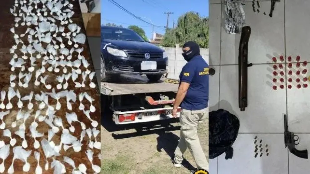 Durante los procedimientos se secuestraron, además de la cocaína, 13 gramos de marihuana, $850.000 en efectivo, tres armas de fuego, municiones, 24 teléfonos celulares, una balanza de precisión, documentación clave, elementos de fraccionamiento y dos vehículos: un automóvil Volkswagen Voyage y una motocicleta Honda 150.