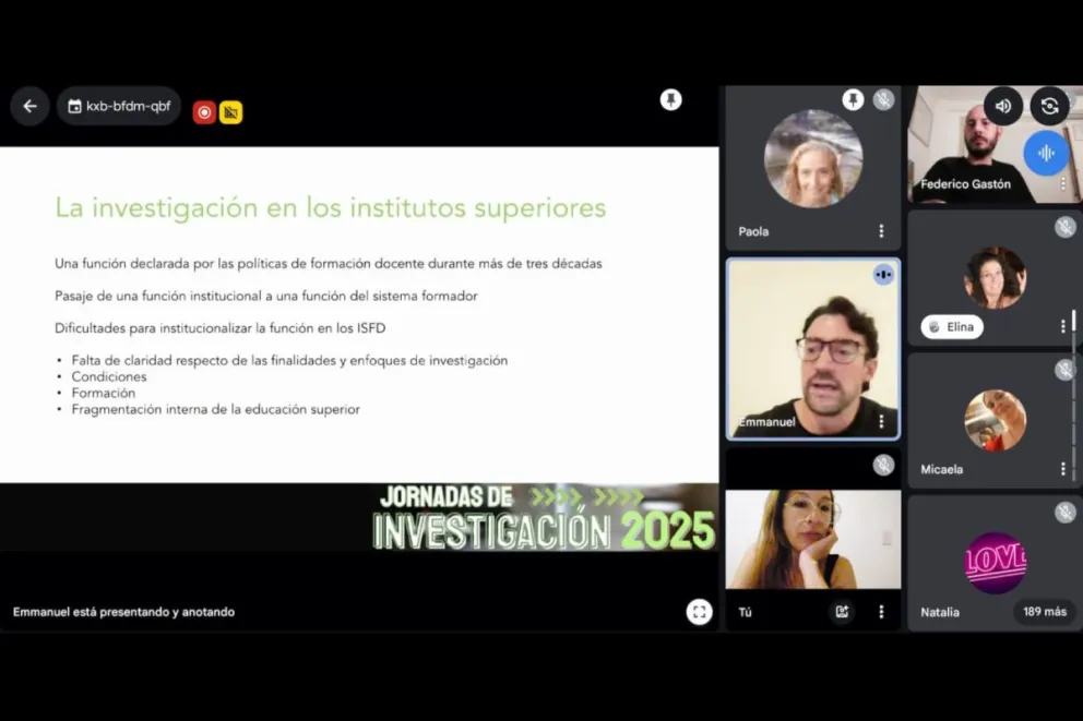 La coordinadora de Investigación y Evaluación Educativa del CGE, Mariana Blanco, presentó los avances del estudio "La política de Alfabetización en Educación Inicial", realizado en el marco de la Red Federal de Investigación Educativa. A su vez, el especialista Emanuel Lista expuso "Investigar en la formación docente: reflexiones sobre el qué, el para qué y el cómo", destacando la necesidad de consolidar una cultura académica y de investigación en los institutos superiores.