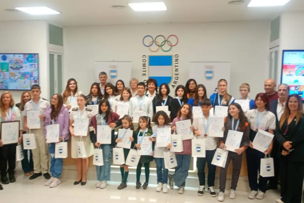 Los ganadores participaron de la ceremonia de entrega de premios, que se desarrolló en la sede del Comité Olímpico Argentino, donde recibieron una medalla y un diploma. Estuvieron acompañados por los docentes Nelly Rodríguez y Matías Correas. (APFDigital)