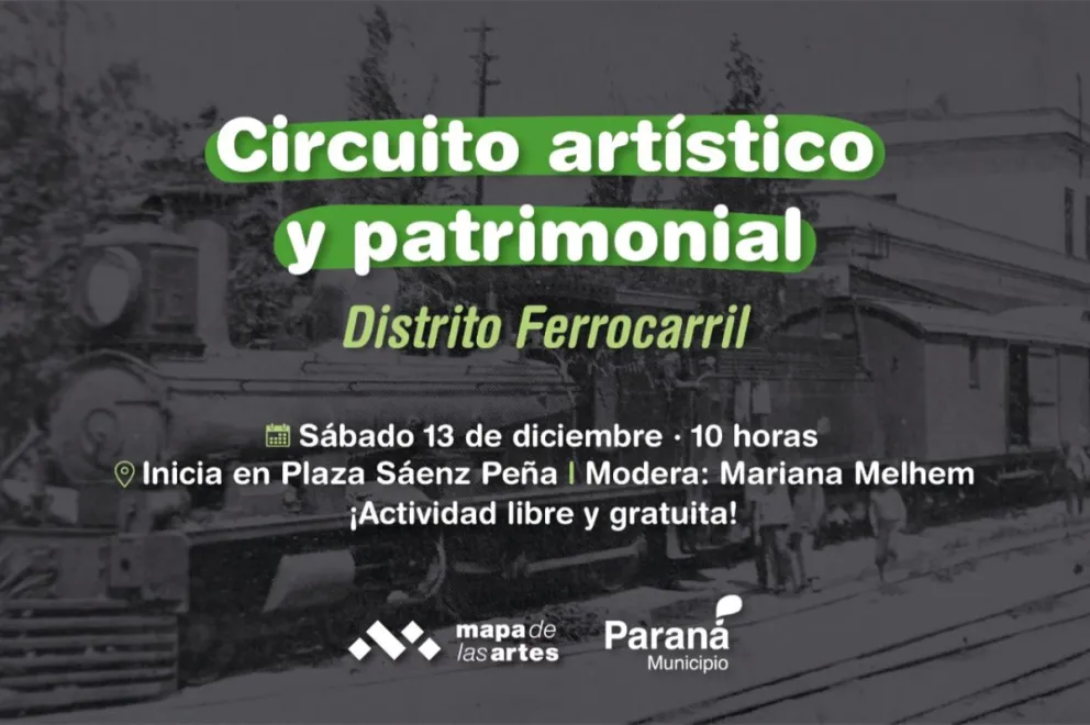 La Municipalidad de Paraná, en articulación con el Mapa de las Artes, organiza un circuito artístico y patrimonial en el Distrito Ferrocarril que invita a vecinos, vecinas y visitantes a recorrer los espacios culturales más representativos de la zona. La propuesta será moderada por Mariana Melhem.